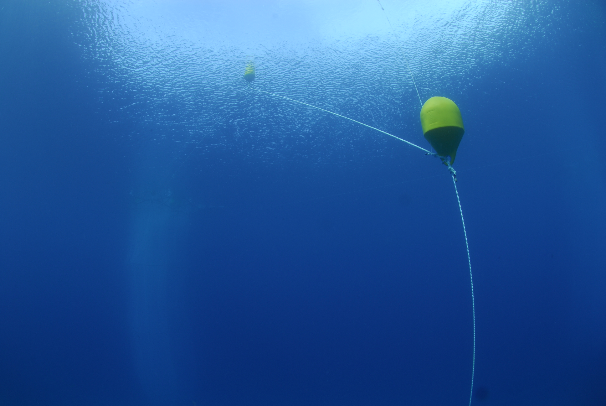 la baie d'Elbo, dans la réserve de Scandola en Corse. Quatre mésocosmes